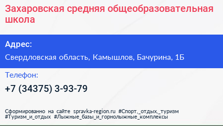 Захаровская средняя общеобразовательная школа по адресу Свердловская область, Камышлов, Бачурина, 1Б в дальнейшем Организация, размещена в следующих категориях: