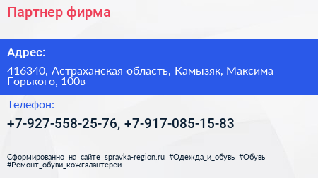 Для связи с организацией воспользуйтесь номером телефона: +7-927-558-25-76, +7-917-085-15-83. Пн: c 08:30-12:00, Вт: c 08:30-12:00, Ср: c 08:30-12:00, Чт: c 08:30-12:00, Пт: c 08:30-12:00, Сб: c 09:00-14:00, Вс: выходной, вы можете обратиться в эту организацию.