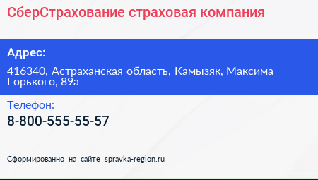 СберСтрахование, страховая компания по адресу 416340, Астраханская область, Камызяк, Максима Горького, 89а в дальнейшем Организация, размещена в следующих категориях: