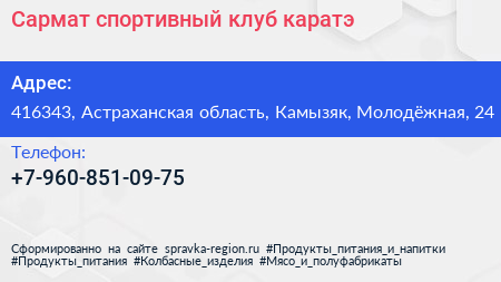Сармат, спортивный клуб каратэ по адресу 416343, Астраханская область, Камызяк, Молодёжная, 24 в дальнейшем Организация, размещена в следующих категориях:
