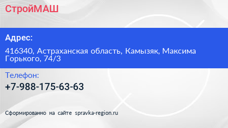 СтройМАШ по адресу 416340, Астраханская область, Камызяк, Максима Горького, 74/3 в дальнейшем Организация, размещена в следующих категориях: