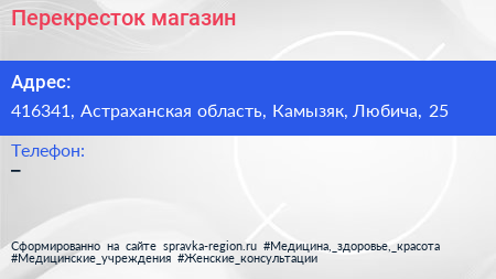 Перекресток, магазин по адресу 416341, Астраханская область, Камызяк, Любича, 25 в дальнейшем Организация, размещена в следующих категориях: