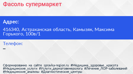 Фасоль, супермаркет по адресу 416340, Астраханская область, Камызяк, Максима Горького, 100в/1 в дальнейшем Организация, размещена в следующих категориях: