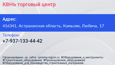 КВНъ, торговый центр по адресу 416341, Астраханская область, Камызяк, Любича, 17 в дальнейшем Организация, размещена в следующих категориях:
