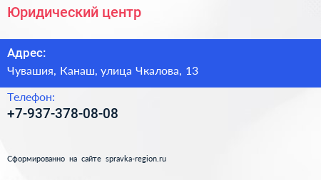 Юридический центр по адресу Чувашия, Канаш, улица Чкалова, 13 в дальнейшем Организация, размещена в следующих категориях: