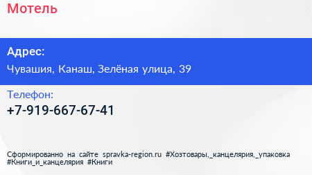Мотель по адресу Чувашия, Канаш, Зелёная улица, 39 в дальнейшем Организация, размещена в следующих категориях: