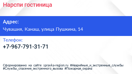 Нарспи, гостиница по адресу Чувашия, Канаш, улица Пушкина, 14 в дальнейшем Организация, размещена в следующих категориях: