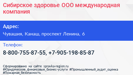 Сибирское здоровье, ООО, международная компания по адресу Чувашия, Канаш, проспект Ленина, 6 в дальнейшем Организация, размещена в следующих категориях:
