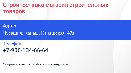 Стройпоставка, магазин строительных товаров по адресу Чувашия, Канаш, Канашская, 47а в дальнейшем Организация, размещена в следующих категориях: