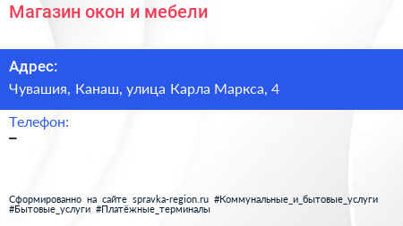 Магазин окон и мебели по адресу Чувашия, Канаш, улица Карла Маркса, 4 в дальнейшем Организация, размещена в следующих категориях: