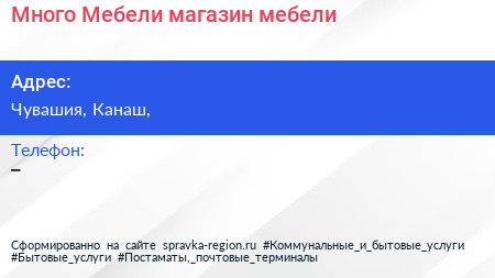 Много Мебели, магазин мебели по адресу Чувашия, Канаш, в дальнейшем Организация, размещена в следующих категориях: