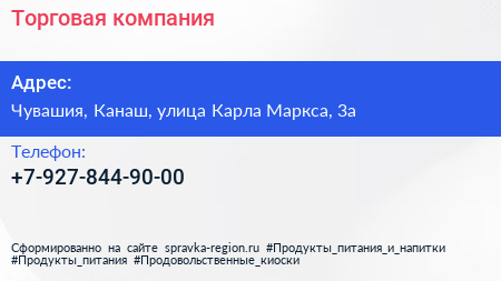 Торговая компания по адресу Чувашия, Канаш, улица Карла Маркса, 3а в дальнейшем Организация, размещена в следующих категориях:
