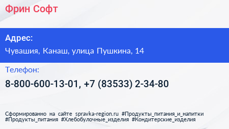 Фрин-Софт по адресу Чувашия, Канаш, улица Пушкина, 14 в дальнейшем Организация, размещена в следующих категориях: