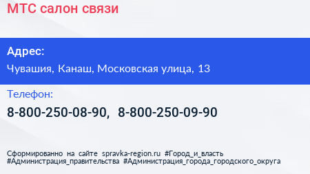 МТС, салон связи по адресу Чувашия, Канаш, Московская улица, 13 в дальнейшем Организация, размещена в следующих категориях: