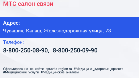 МТС, салон связи по адресу Чувашия, Канаш, Железнодорожная улица, 73 в дальнейшем Организация, размещена в следующих категориях: