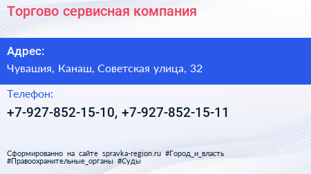 Торгово-сервисная компания по адресу Чувашия, Канаш, Советская улица, 32 в дальнейшем Организация, размещена в следующих категориях: