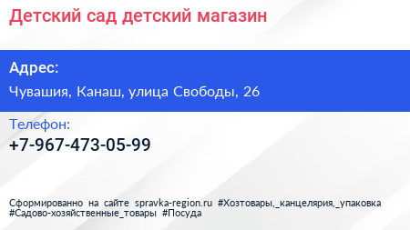 Детский сад, детский магазин по адресу Чувашия, Канаш, улица Свободы, 26 в дальнейшем Организация, размещена в следующих категориях:
