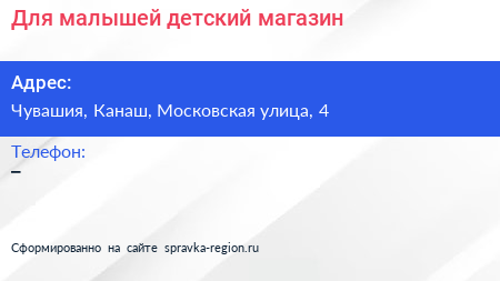 Для малышей, детский магазин по адресу Чувашия, Канаш, Московская улица, 4 в дальнейшем Организация, размещена в следующих категориях: