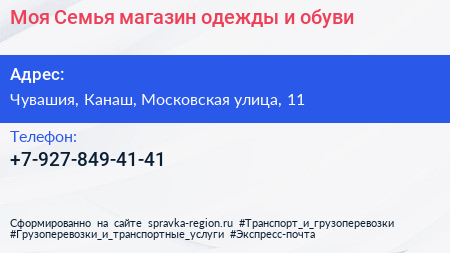 Моя Семья, магазин одежды и обуви по адресу Чувашия, Канаш, Московская улица, 11 в дальнейшем Организация, размещена в следующих категориях: