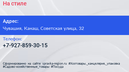На стиле по адресу Чувашия, Канаш, Советская улица, 32 в дальнейшем Организация, размещена в следующих категориях: