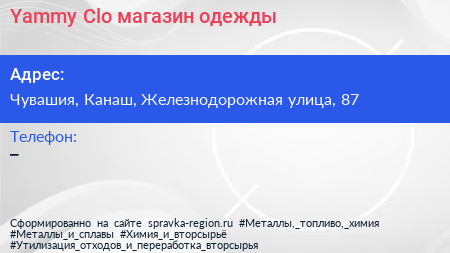 Yammy Clo, магазин одежды по адресу Чувашия, Канаш, Железнодорожная улица, 87 в дальнейшем Организация, размещена в следующих категориях: