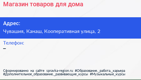 Магазин товаров для дома по адресу Чувашия, Канаш, Кооперативная улица, 2 в дальнейшем Организация, размещена в следующих категориях: