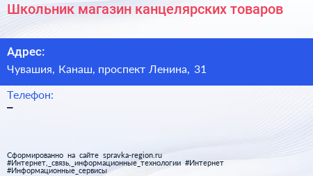 Школьник, магазин канцелярских товаров по адресу Чувашия, Канаш, проспект Ленина, 31 в дальнейшем Организация, размещена в следующих категориях: