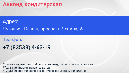 Акконд, кондитерская по адресу Чувашия, Канаш, проспект Ленина, 6 в дальнейшем Организация, размещена в следующих категориях: