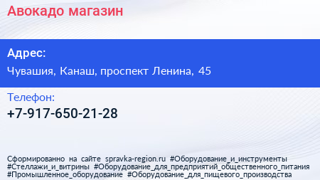 Авокадо, магазин по адресу Чувашия, Канаш, проспект Ленина, 45 в дальнейшем Организация, размещена в следующих категориях: