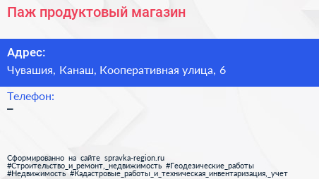 Паж, продуктовый магазин по адресу Чувашия, Канаш, Кооперативная улица, 6 в дальнейшем Организация, размещена в следующих категориях: