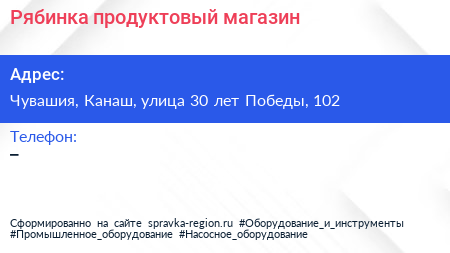 Рябинка, продуктовый магазин по адресу Чувашия, Канаш, улица 30 лет Победы, 102 в дальнейшем Организация, размещена в следующих категориях: