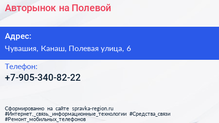 Авторынок на Полевой по адресу Чувашия, Канаш, Полевая улица, 6 в дальнейшем Организация, размещена в следующих категориях: