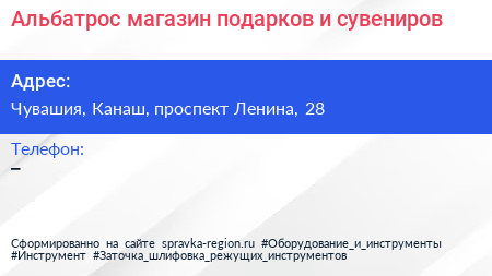 Альбатрос, магазин подарков и сувениров по адресу Чувашия, Канаш, проспект Ленина, 28 в дальнейшем Организация, размещена в следующих категориях: