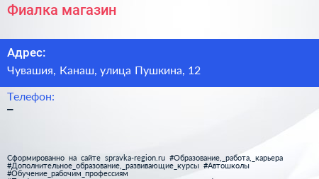 Фиалка, магазин по адресу Чувашия, Канаш, улица Пушкина, 12 в дальнейшем Организация, размещена в следующих категориях: