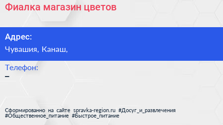 Фиалка, магазин цветов по адресу Чувашия, Канаш, в дальнейшем Организация, размещена в следующих категориях:
