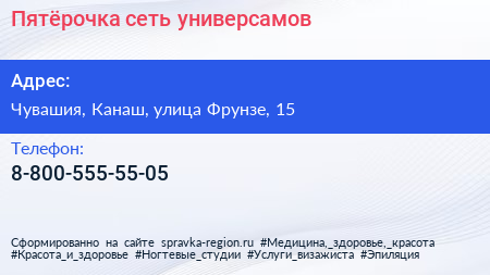 Пятёрочка, сеть универсамов по адресу Чувашия, Канаш, улица Фрунзе, 15 в дальнейшем Организация, размещена в следующих категориях: