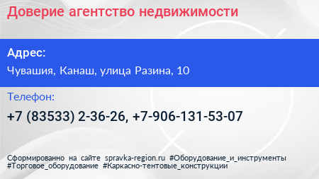 Доверие, агентство недвижимости по адресу Чувашия, Канаш, улица Разина, 10 в дальнейшем Организация, размещена в следующих категориях: