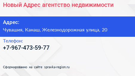 Новый Адрес, агентство недвижимости по адресу Чувашия, Канаш, Железнодорожная улица, 20 в дальнейшем Организация, размещена в следующих категориях: