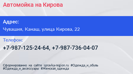 Автомойка на Кирова по адресу Чувашия, Канаш, улица Кирова, 22 в дальнейшем Организация, размещена в следующих категориях: