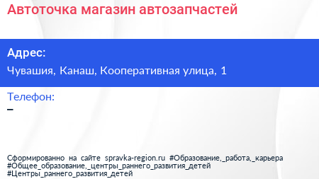 Автоточка, магазин автозапчастей по адресу Чувашия, Канаш, Кооперативная улица, 1 в дальнейшем Организация, размещена в следующих категориях: