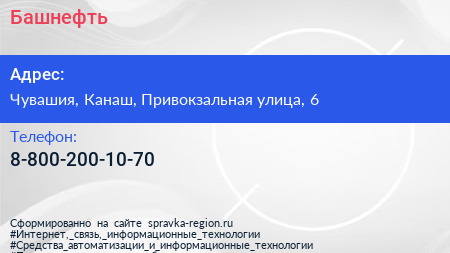 Башнефть по адресу Чувашия, Канаш, Привокзальная улица, 6 в дальнейшем Организация, размещена в следующих категориях: