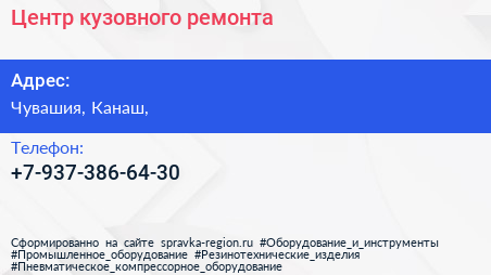 Центр кузовного ремонта по адресу Чувашия, Канаш, в дальнейшем Организация, размещена в следующих категориях: