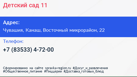 Детский сад №11 по адресу Чувашия, Канаш, Восточный микрорайон, 22 в дальнейшем Организация, размещена в следующих категориях: