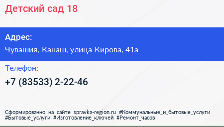 Детский сад №18 по адресу Чувашия, Канаш, улица Кирова, 41а в дальнейшем Организация, размещена в следующих категориях:
