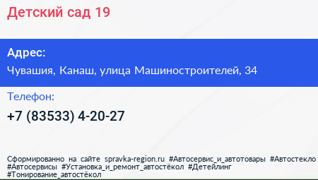 Детский сад №19 по адресу Чувашия, Канаш, улица Машиностроителей, 34 в дальнейшем Организация, размещена в следующих категориях: