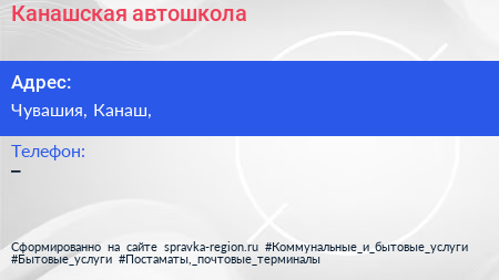 Канашская автошкола по адресу Чувашия, Канаш, в дальнейшем Организация, размещена в следующих категориях: