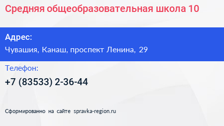 Средняя общеобразовательная школа №10 по адресу Чувашия, Канаш, проспект Ленина, 29 в дальнейшем Организация, размещена в следующих категориях:
