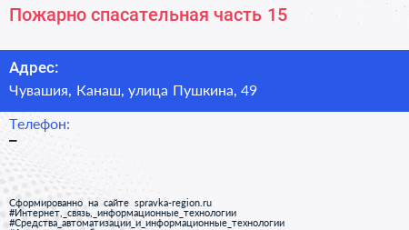 Пожарно-спасательная часть №15 по адресу Чувашия, Канаш, улица Пушкина, 49 в дальнейшем Организация, размещена в следующих категориях: