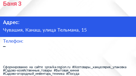 Баня №3 по адресу Чувашия, Канаш, улица Тельмана, 15 в дальнейшем Организация, размещена в следующих категориях: