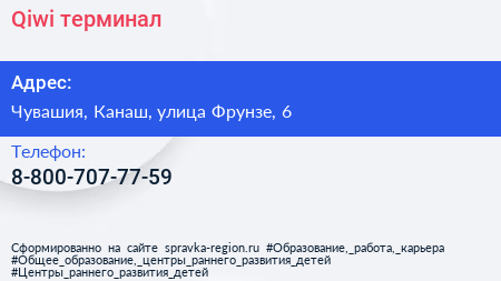Qiwi, терминал по адресу Чувашия, Канаш, улица Фрунзе, 6 в дальнейшем Организация, размещена в следующих категориях: